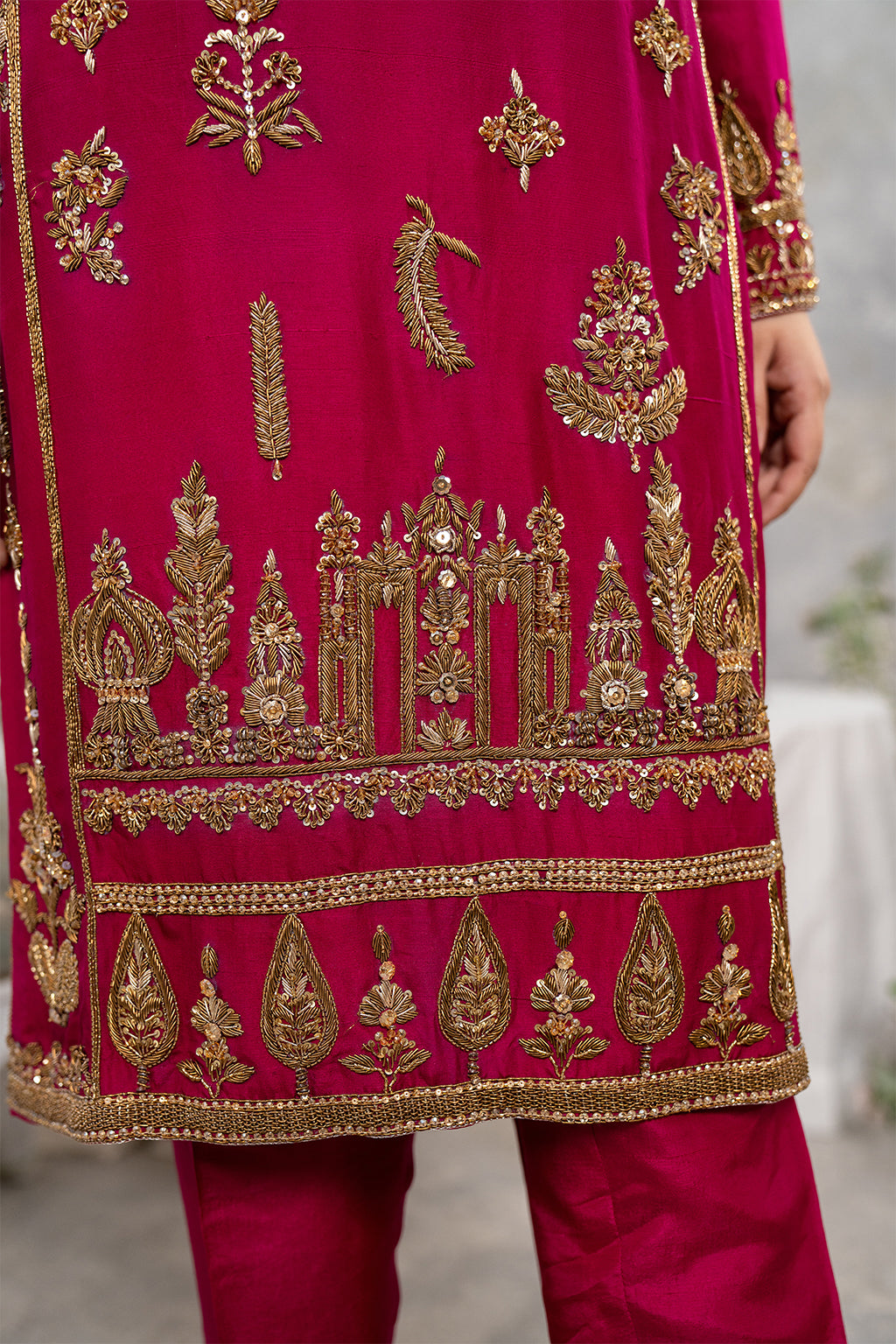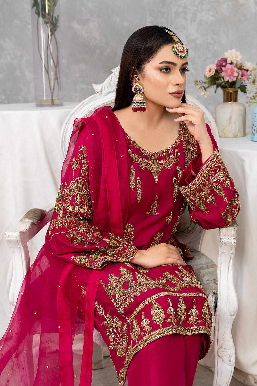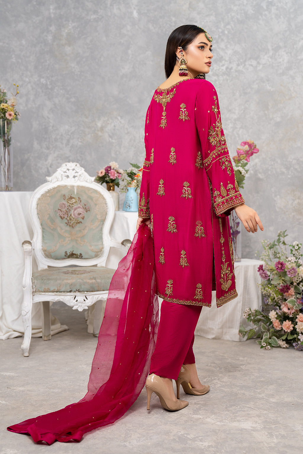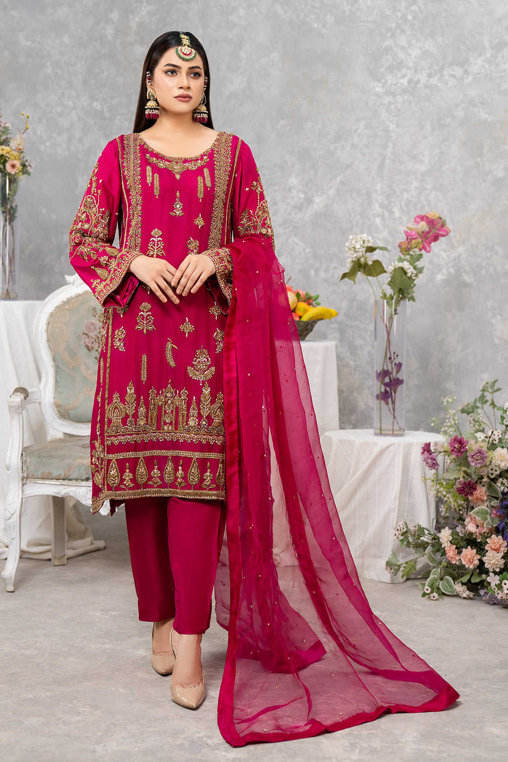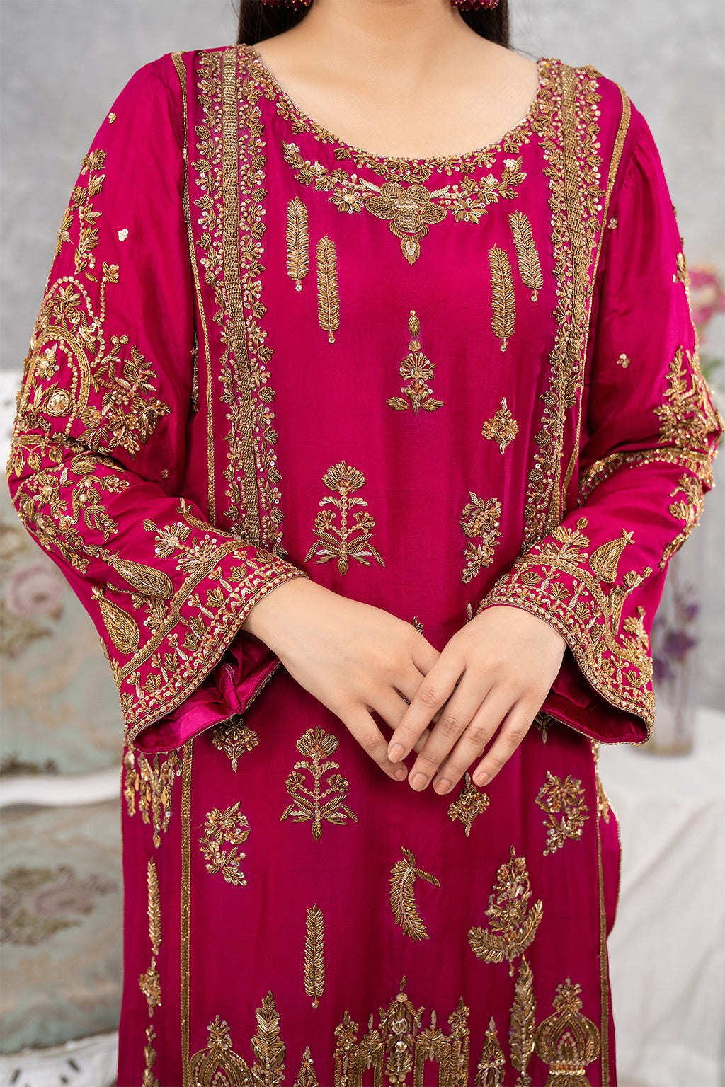 Hot pink colour with heavy work on front with nice Duppta and trouser
