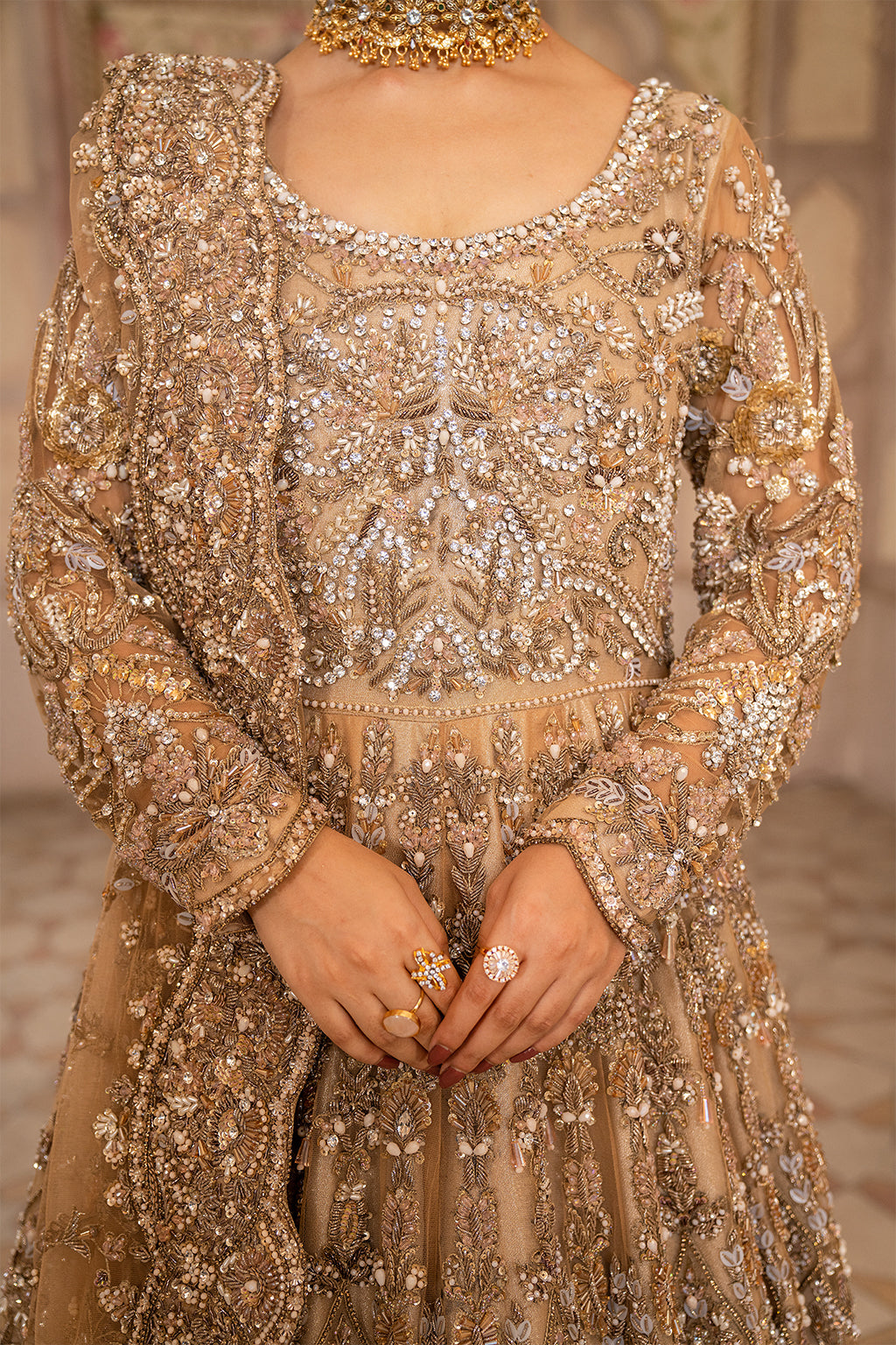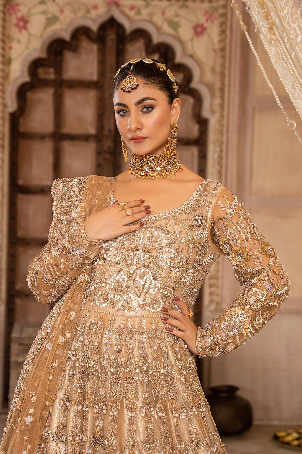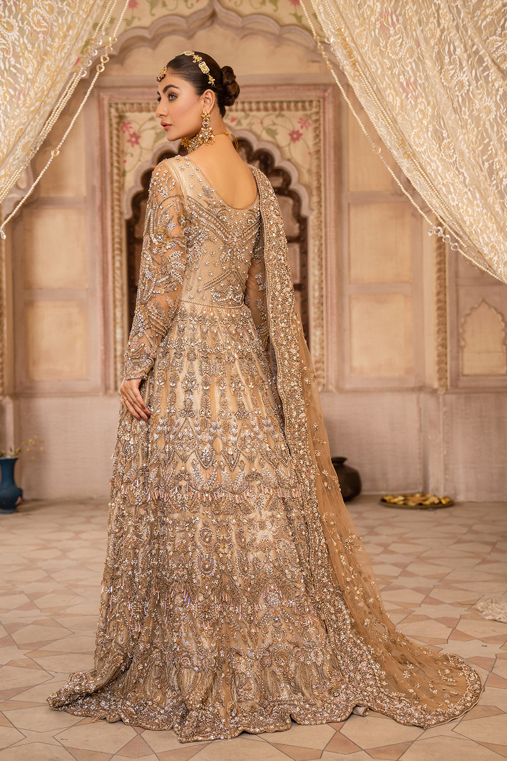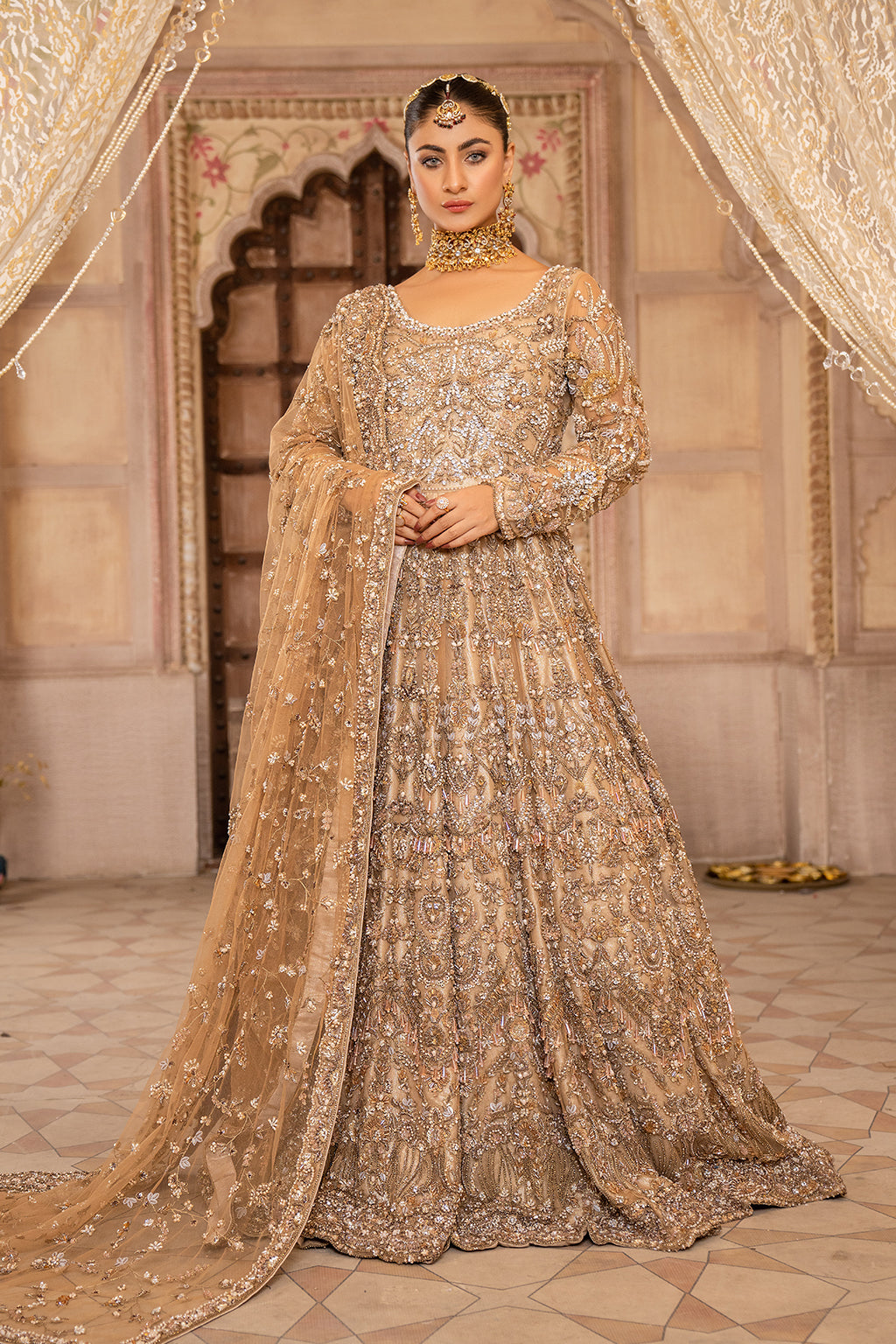 Brown full heavy long Maxi with front and back work with full heavy duppta