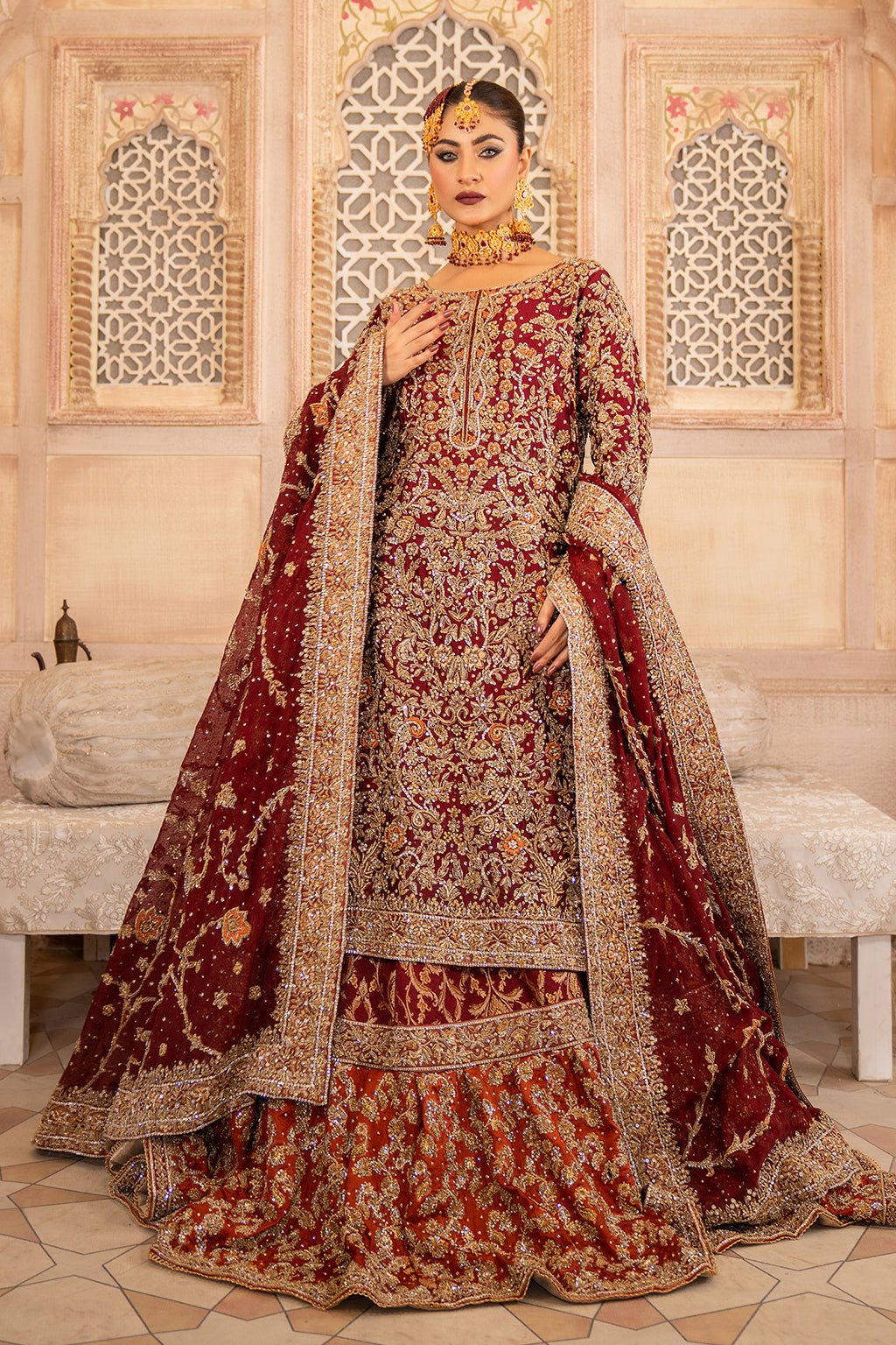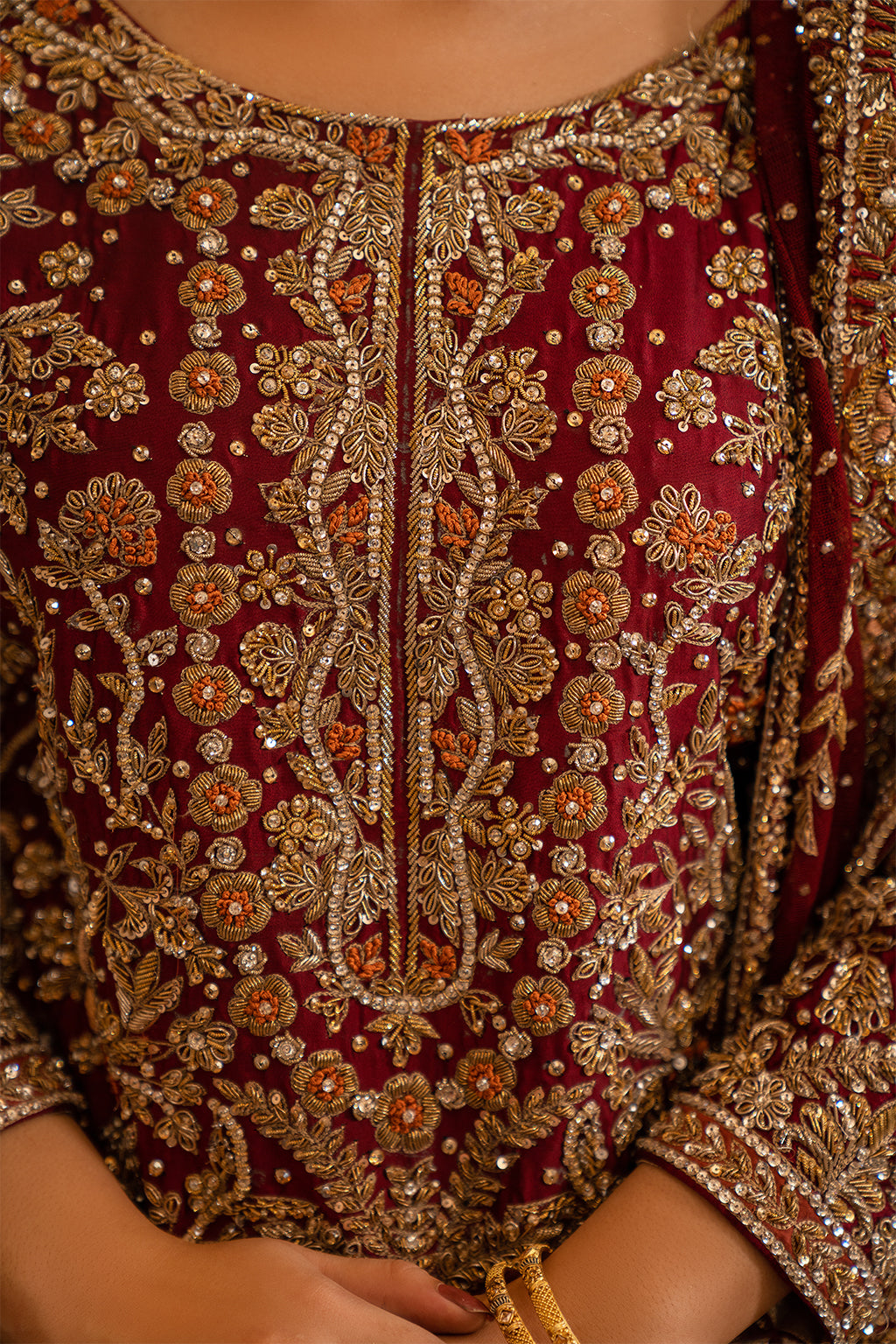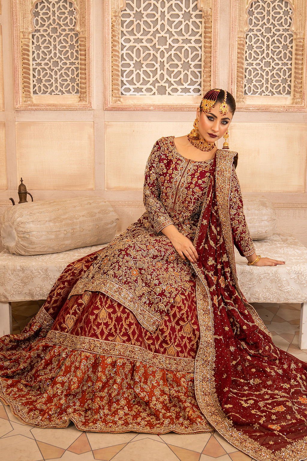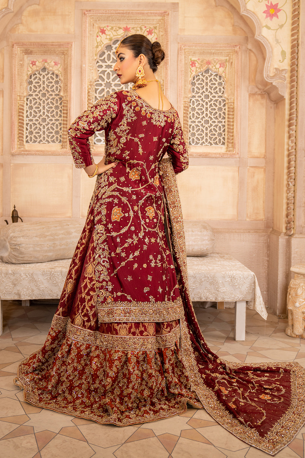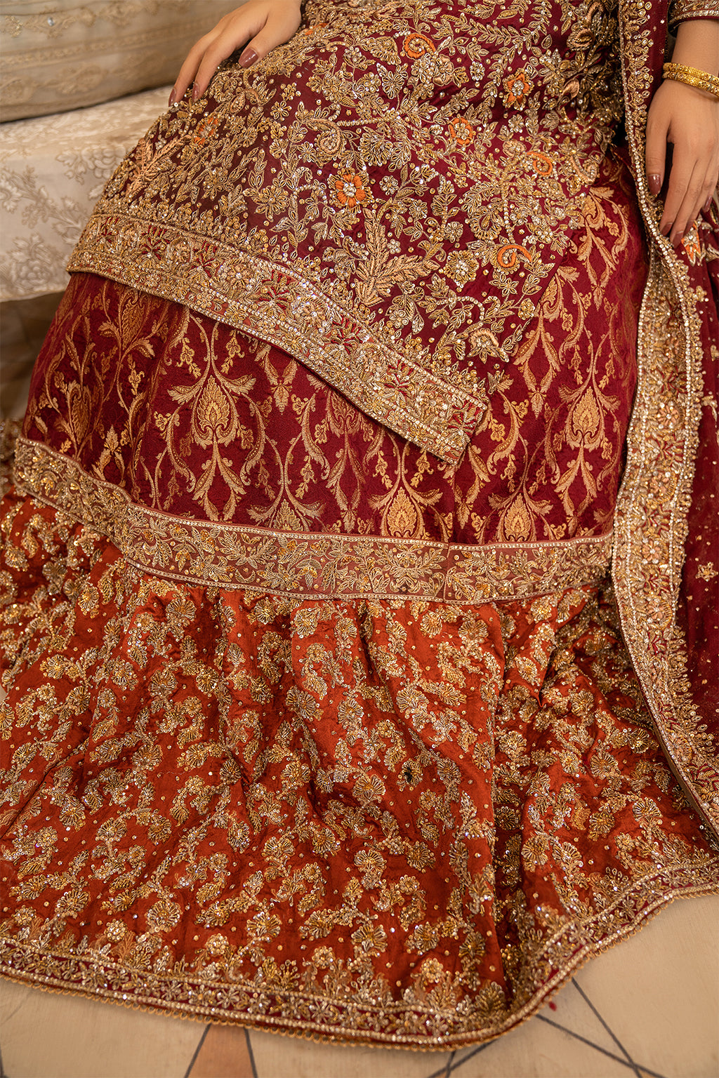 Red bridal long shirt with full heavy work on front and back with fully heavy and embroidered duppta with very beautiful fershii jamawar lehenga