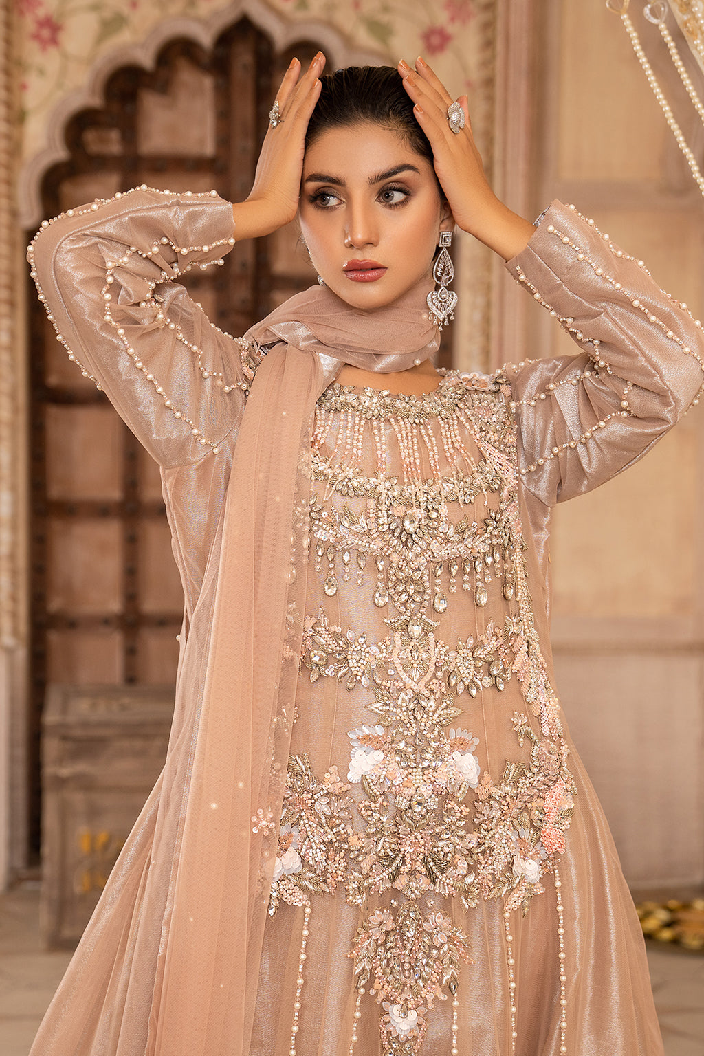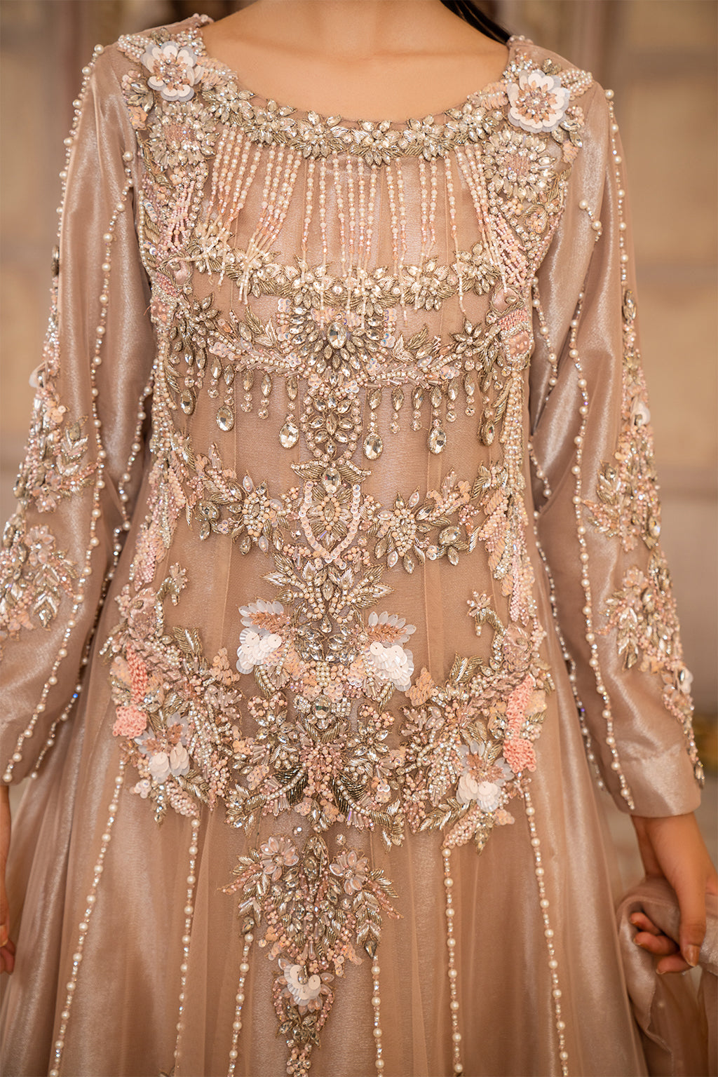 Comes with a delicate Net dupatta featuring similarly gentle accents—light peral sprays to match the maxi's aesthetic while retaining elegance and subtlety.