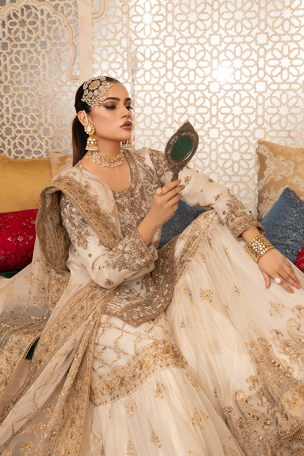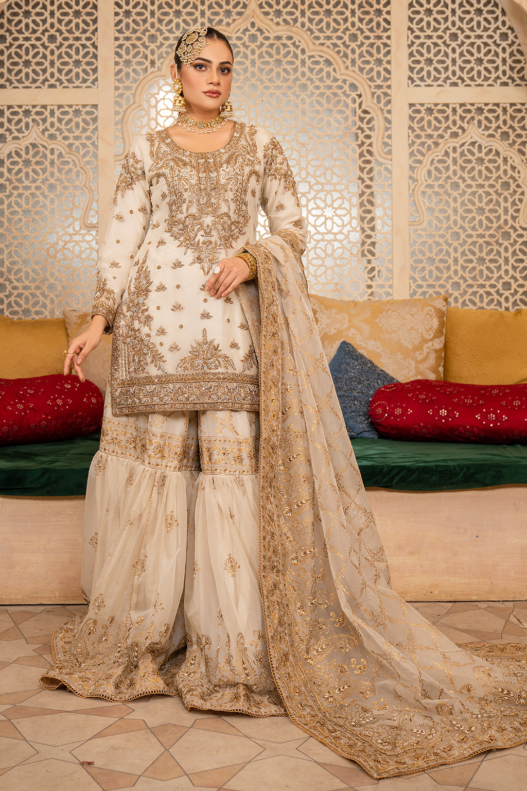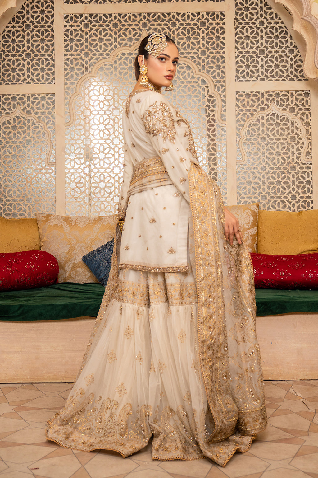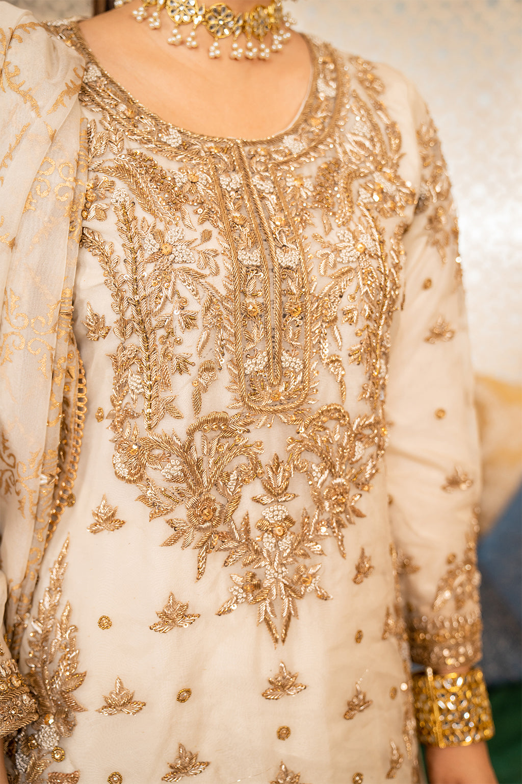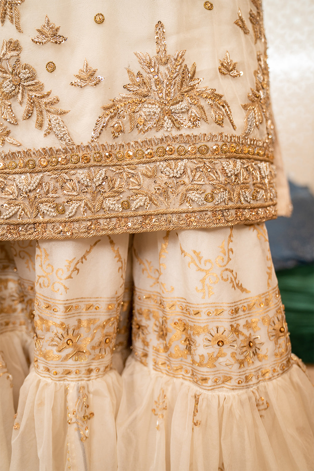 Nikkah white shirt with full heavy front work and back have also work with very nice duppta have kiran on it with full heavy work sharara
