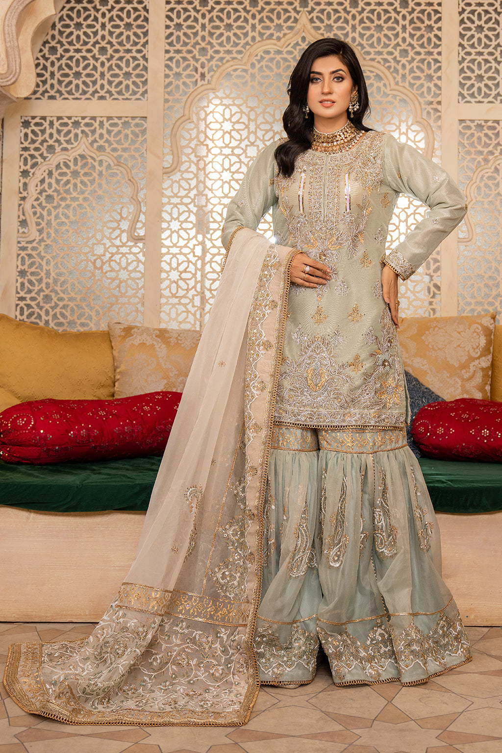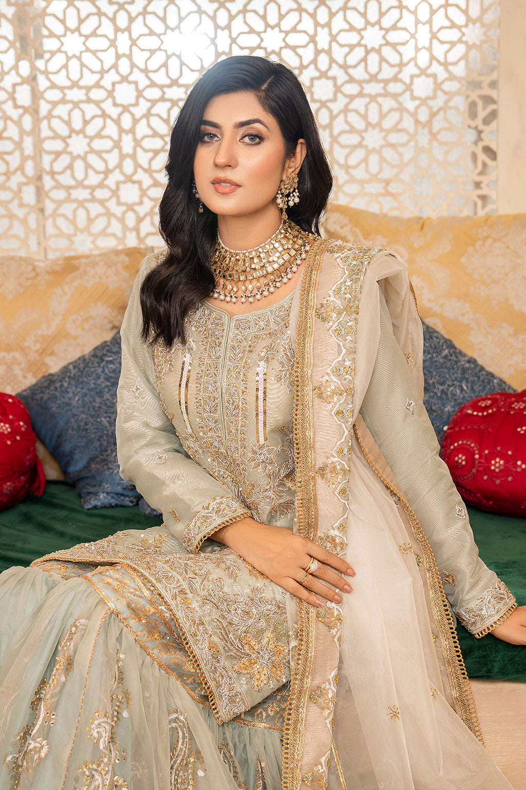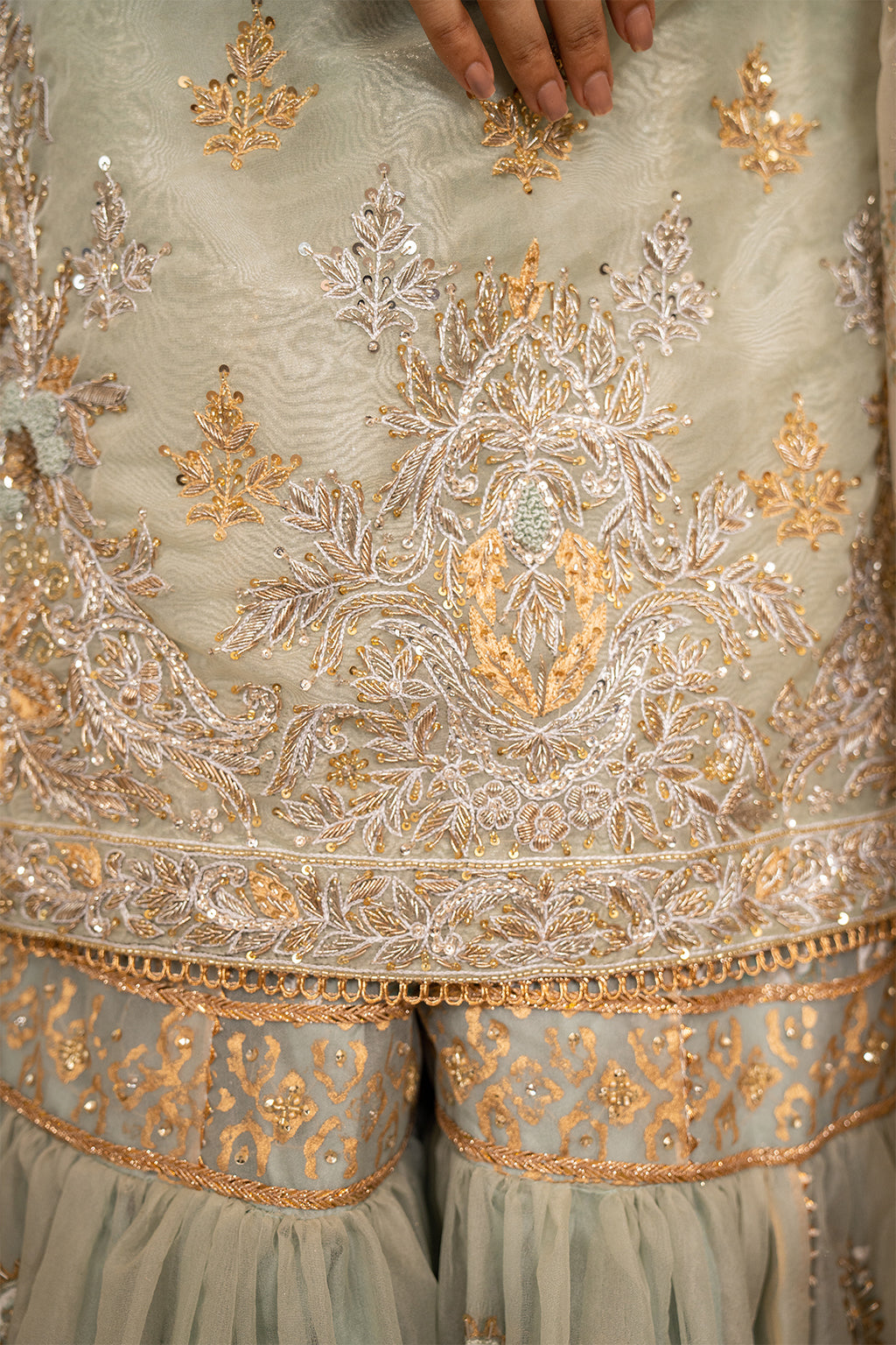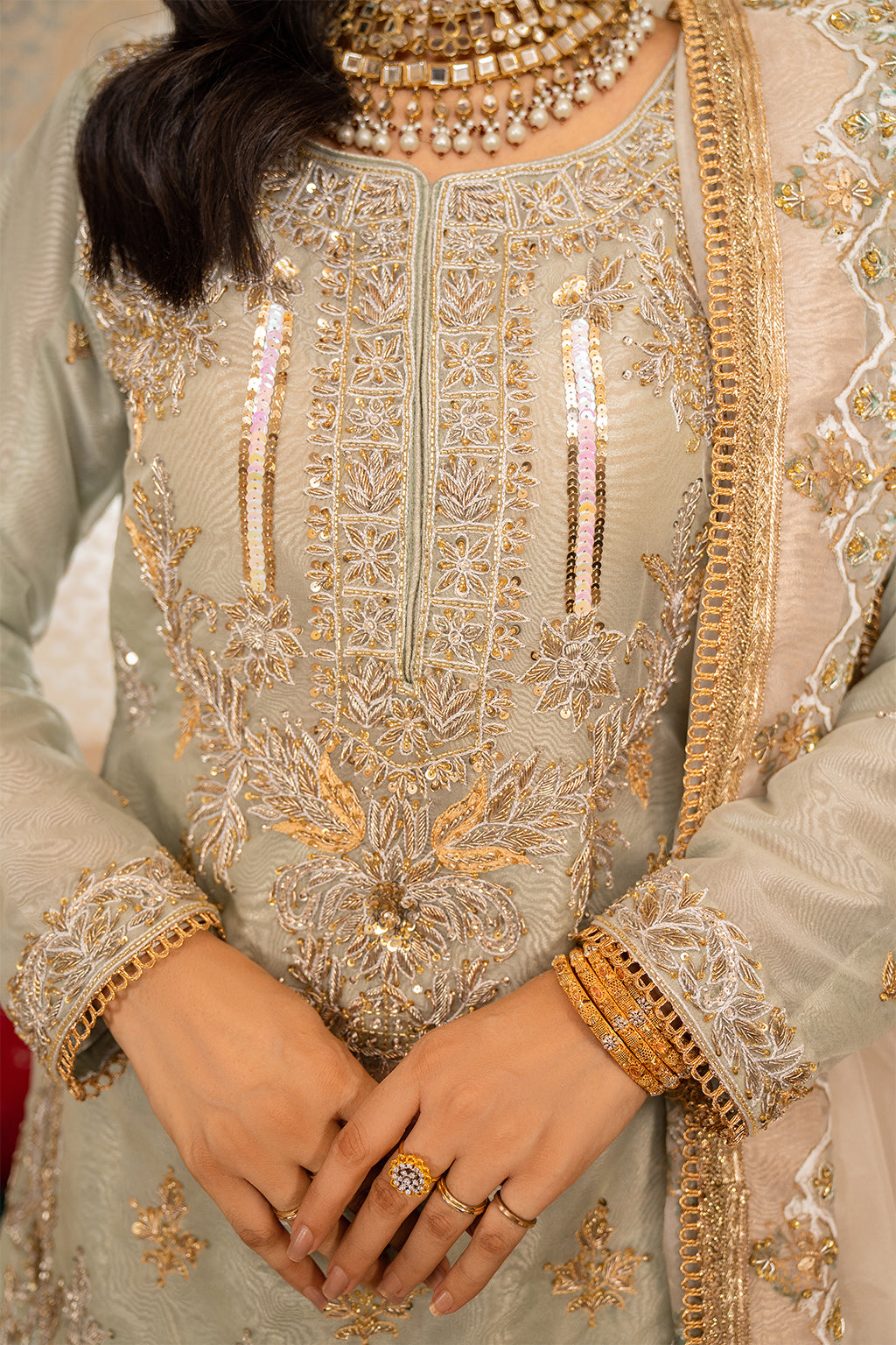 Nikkah pista shirt with full heavy front work and back also have work with nice duppta have kiran and fully work with heavy work sharara
